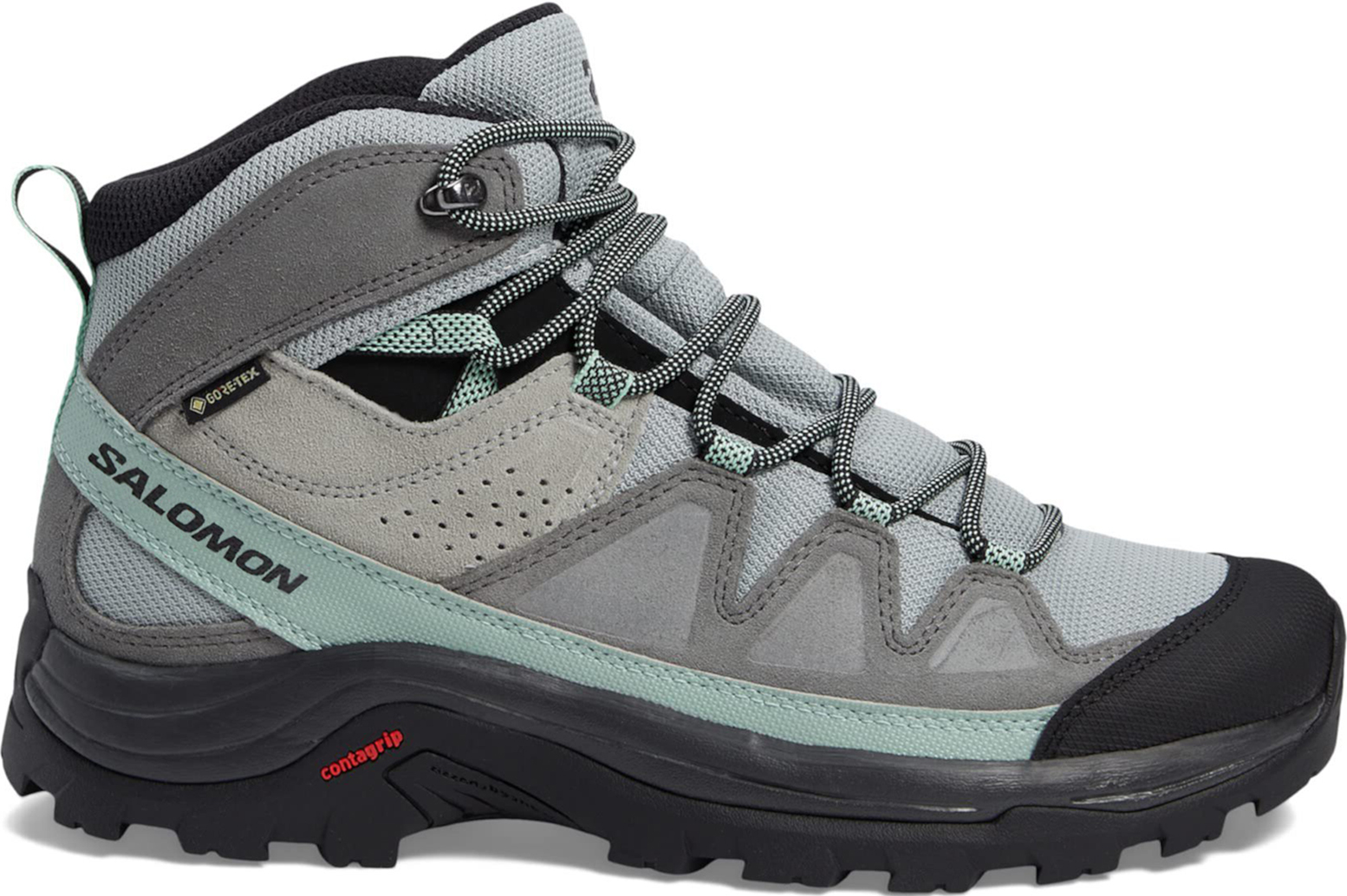 Ботинки Salomon Quest Rove GORE-TEX сочетают в себе туристическую обувь для разнообразных маршрутов и стильную городскую модель, которую можно стилизовать с любыми образами. Пара выполнена из прочного метериала. Мембрана GORE-TEX эффективно защищает стопы от влаги. Шнуровка с люверсами-крючками обеспечивает плотную посадку. Подошва Contragrip® минимизирует скольжение и создает максимальный комфорт на любой поверхности, за счет своей конструкции, рисунка протектора и состава резины.